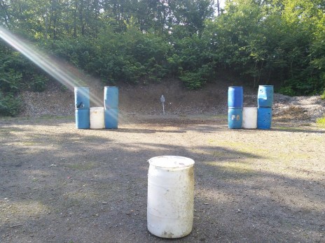 Position A is the white barrel furthest up range, near the camera from this picture. Position B is the white barrel to the left, and C is to the right.